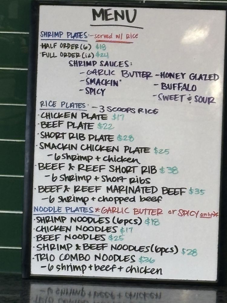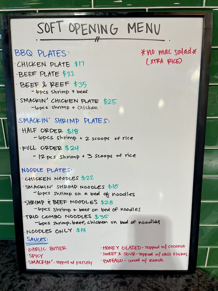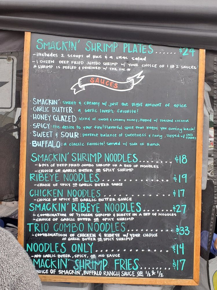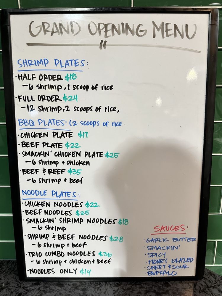 One of their standout dishes, the Smackin' Chicken Plate, features perfectly grilled chicken with a smoky BBQ flair, paired with large, succulent shrimp. While the garlic butter sauces add richness, dishes like the Smackin' Shrimp Noodles offer a mouthwatering combination of umami flavors that keep customers coming back.